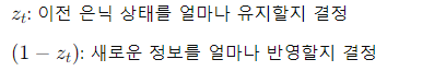 zt 수식을 보면 새로운 정보를 얼마나 반영하고 과거 정보를 얼마나 유지하는지 결정함