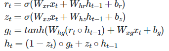 rt는 리셋 게이트고 zt는 업데이트 게이트임