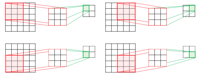 위의 사진은 스트라이드가 2인데 2x2 커널로 최대 풀링을 했을 때 특성맵이 절반의 크기로 다운샘플링됨