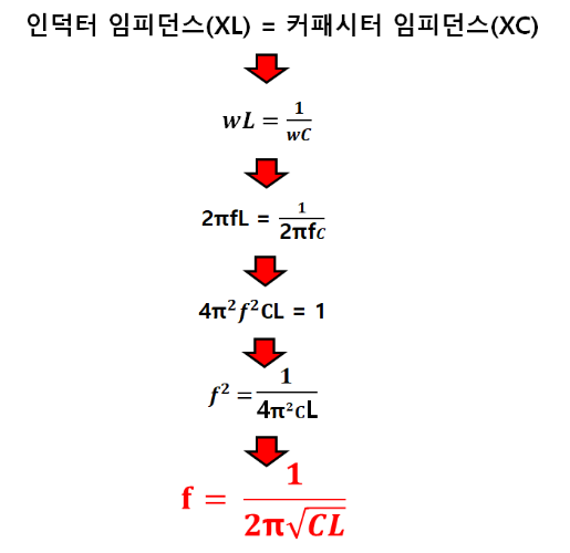 그러다가 어느 주파수가 되면 XL과 Xc가 같아지는 순간이 온다.